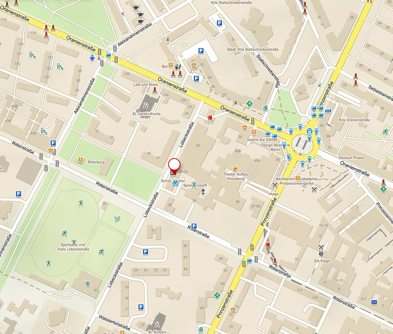 Der Hof befindet sich in hervorragender zentraler und absolut ruhiger Lage am Moritzplatz im Bezirk Kreuzberg an der Grenze zum Bezirk Mitte. Die City-Ost erreicht man in ca. zehn Autominuten. Die U-Bahnhöfe Moritzplatz (U8) und Prinzenstraße (U1) sind fußläufig erreichbar. Zahlreiche Restaurants und Café sind in unmittelbarer Nähe.