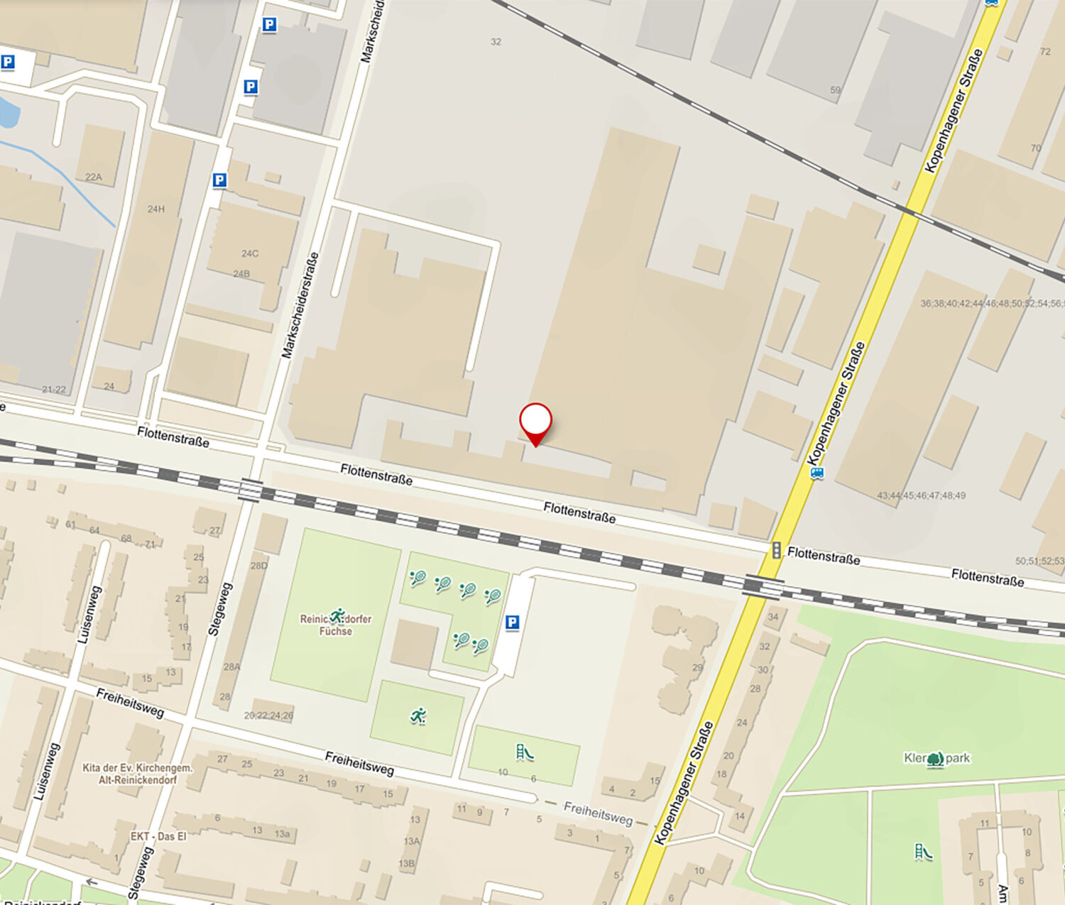 Der Gewerbehof liegt in guter Lage im Berliner Bezirk Reinickendorf. Gegenüber befinden sich Kleingärten sowie der Sportpark Füchse Berlin. Nur 2 km von der Stadtautobahn A 105/111 entfernt liegt das ARMO Gewerbegebiet Flottenstraße. Es ist eines der traditionellen Gewerbegebiete Berlins im zentralen Reinickendorf. Es ist leicht und vielfältig über öffentliche Nahverkehrsmittel zu erreichen.