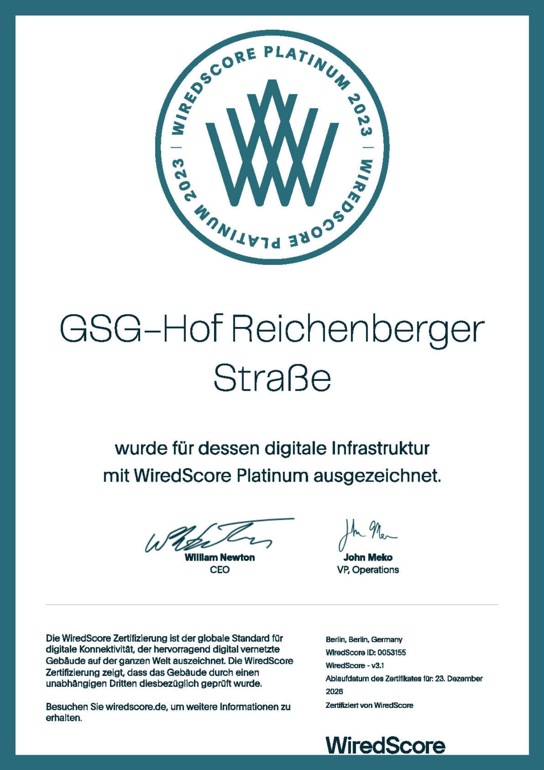 - WiredScore Platinum Zertifizierung