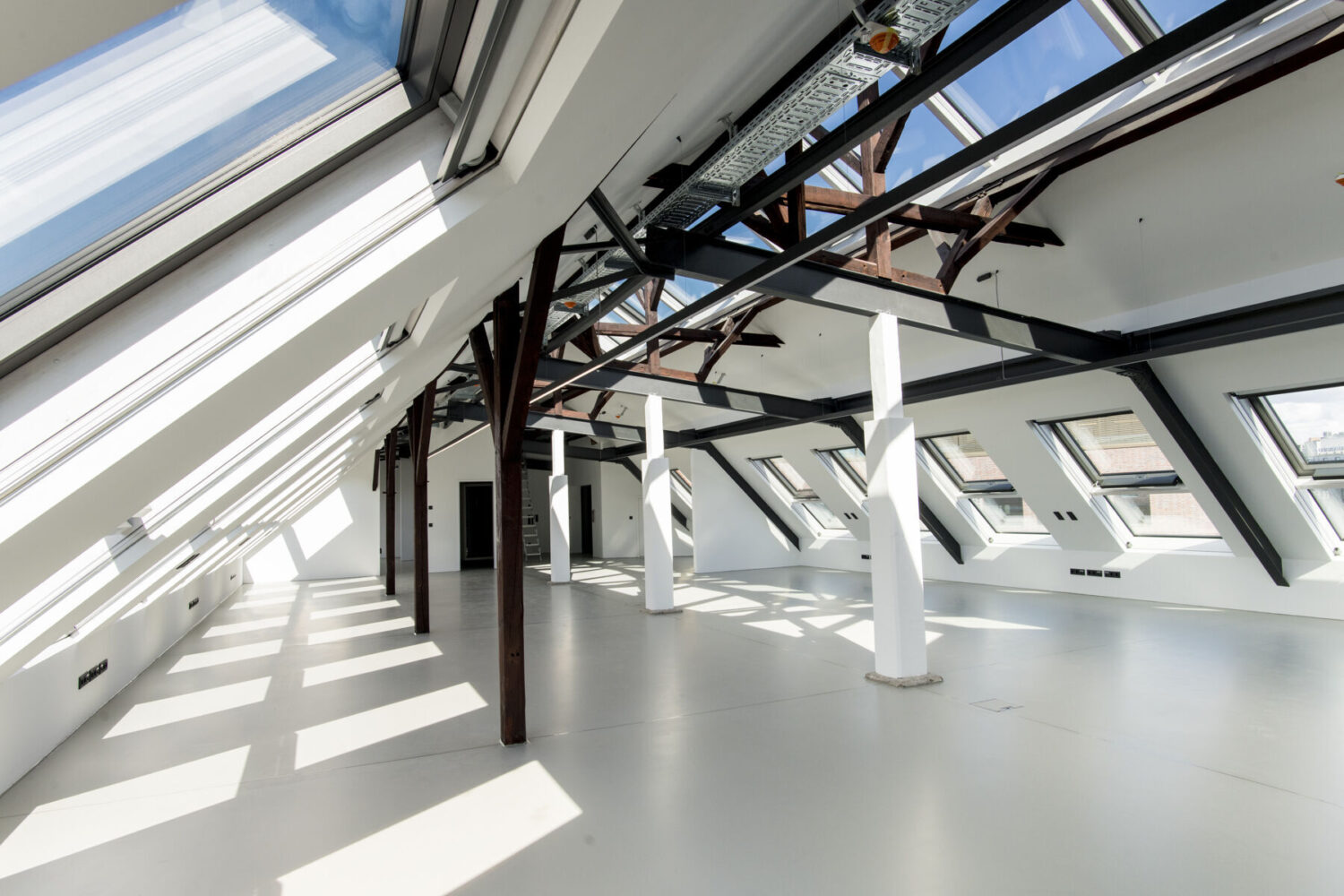 - lichtdurchflutetes Büro im Dachgeschoss