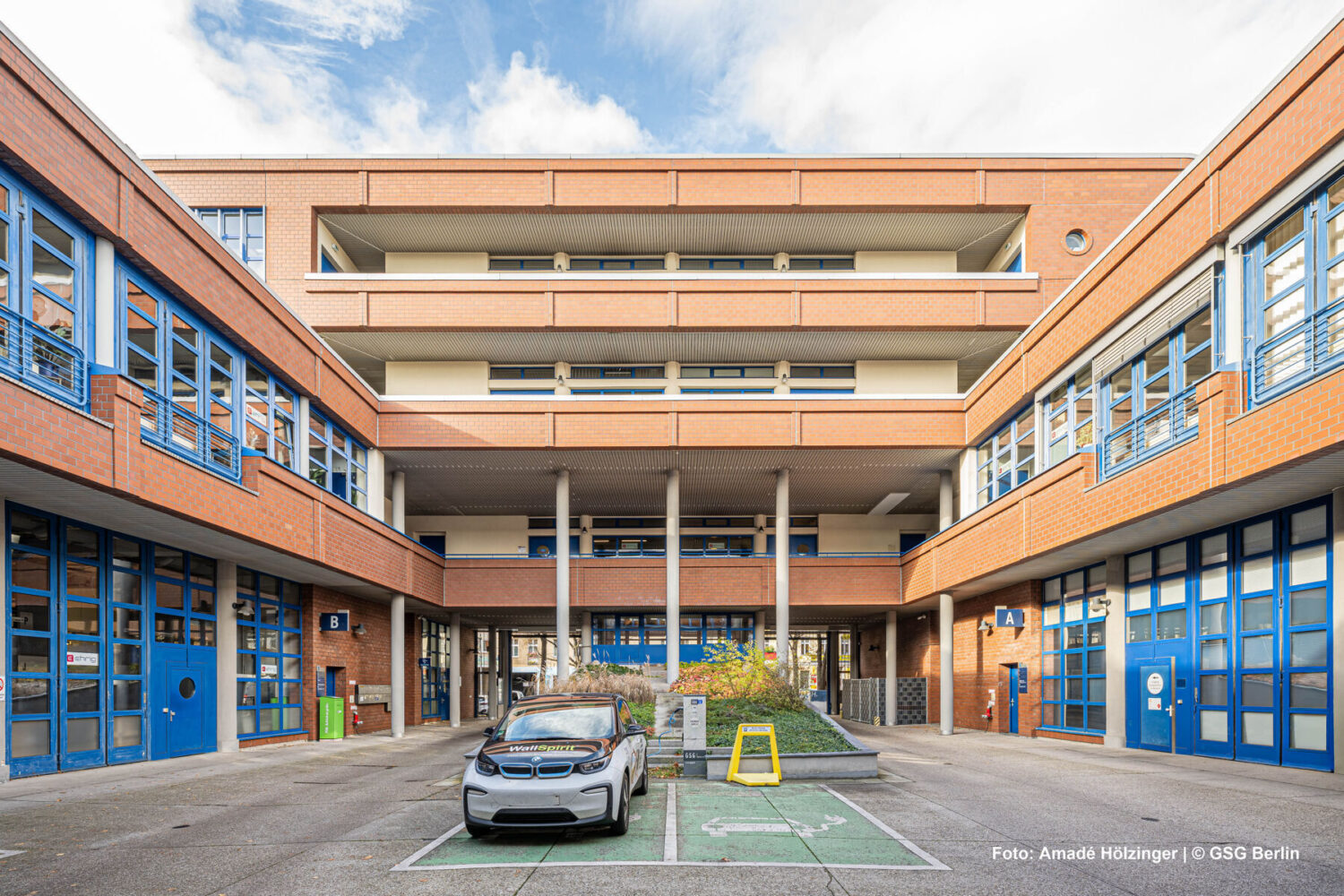 Eine Mischung aus Wohnen und Arbeiten kennzeichnet den Teil von Charlottenburg/Wilmersdorf westlich vom Klausenerplatz-Kiez zwischen Kaiserdamm, Spandauer Damm, Königin-Elisabeth- und Schloßstraße, in den dieser GSG-HOF eingebettet ist.