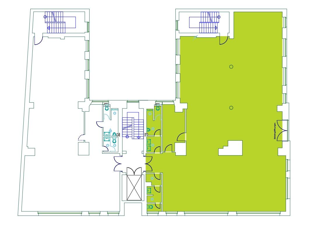 • ca. 300 m² im 2. OG gelegen