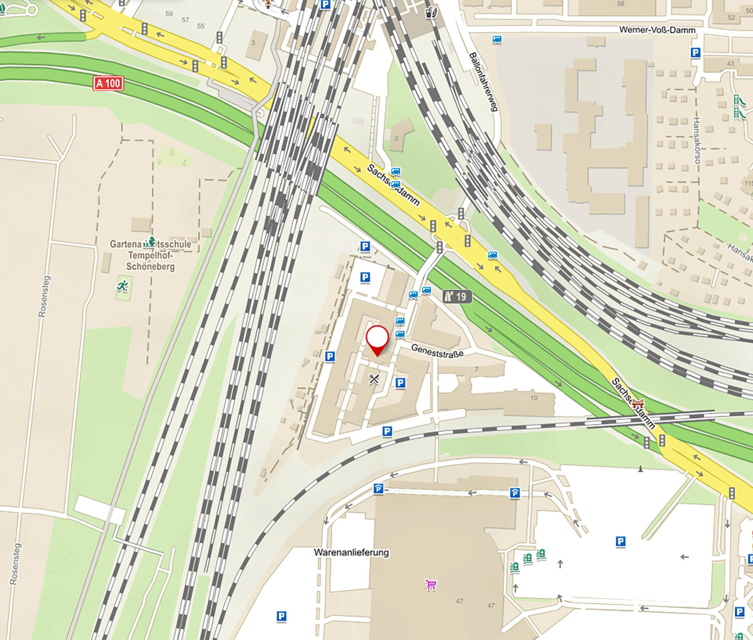In der Geneststraße 5 haben sich Unternehmen der verschiedensten Branchen eingefunden. Sie wissen warum, denn die Geneststraße liegt direkt an der Autobahnauffahrt Sachsendamm. Zum Bahnhof Südkreuz sind es nur 5 Fußminuten. Zum Potsdamer Platz gelangt man mit der Bahn in 7 Minuten und ca. 15 Minuten mit dem Auto.