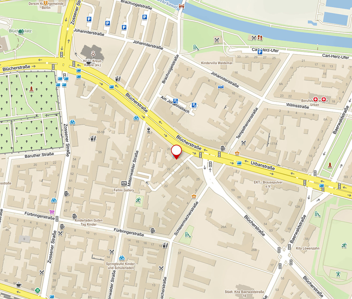 Die Blücherstraße liegt unweit des Bergmannkietzes und des Herrmannplatzes mit seinen multikulturellen Cafés und Restaurants.
