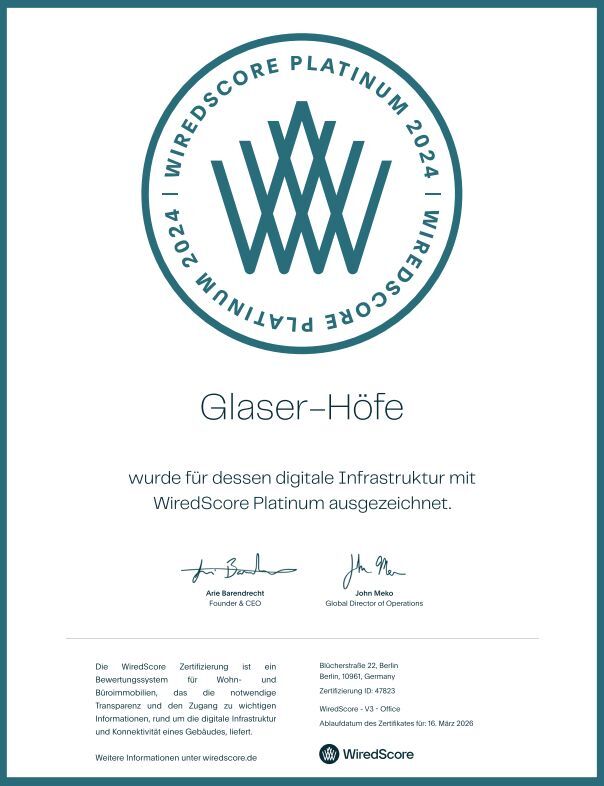 Der Gewerbehof besteht aus fünf Gebäuden, drei Hauptgebäuden, einem Gartenhaus, einem Wohnhaus und einer Parkplatzanlage. Die einzelnen Häuser verfügen über ein bis vier Obergeschosse, lichtdurchflutete Dachgeschosse sowie Keller, die als Lagerflächen genutzt werden können.Den Mietern stehen drei reine Lastenaufzüge, ein Personenaufzug und zwei kombinierte Personen-/Lastenaufzüge zur Verfügung. In jeder Gewerbeeinheit sind separate Damen- und Herrentoiletten vorhanden. Durch Vorinstallationen können sich Mieter zudem eine Teeküche einrichten.