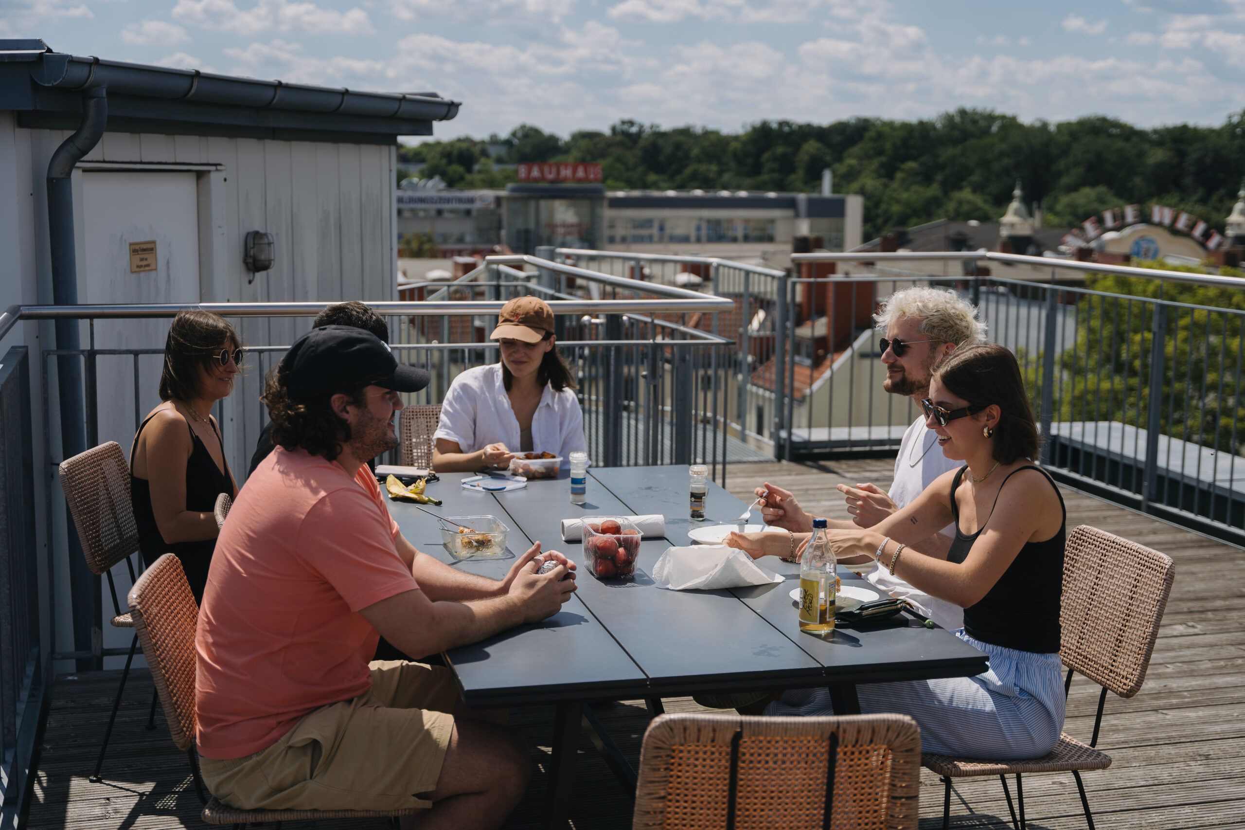 Die „Prinzessinnenhöfe“ in Berlin-Kreuzberg sind ein Paradebeispiel für nachhaltige Stadtentwicklung. Im Zuge einer umfassenden Sanierung ist dort im Jahr 2020 – in Zusammenarbeit mit hochC Landschaftsarchitektur – eine begrünte Dachterrasse entstanden, die das Mikroklima im Quartier spürbar verbessert und neue Aufenthaltsqualität für die Nutzer schafft. Dieses Engagement für mehr Klimaresilienz und urbane Lebensqualität ist nicht unbemerkt geblieben: Die „Prinzessinnenhöfe“ sind Teil des Deutschen Pavillons auf der renommierten 19. Internationalen Architekturausstellung „La Biennale di Venezia“ im Jahr 2025, wo unter dem Titel „STRESSTEST“ innovative Lösungen für die Herausforderungen des Klimawandels in Städten präsentiert werden. Die GSG Berlin ist stolz darauf, mit den „Prinzessinnenhöfen“ ein Beispiel nachhaltiger Transformation auf internationaler Bühne zeigen zu können.