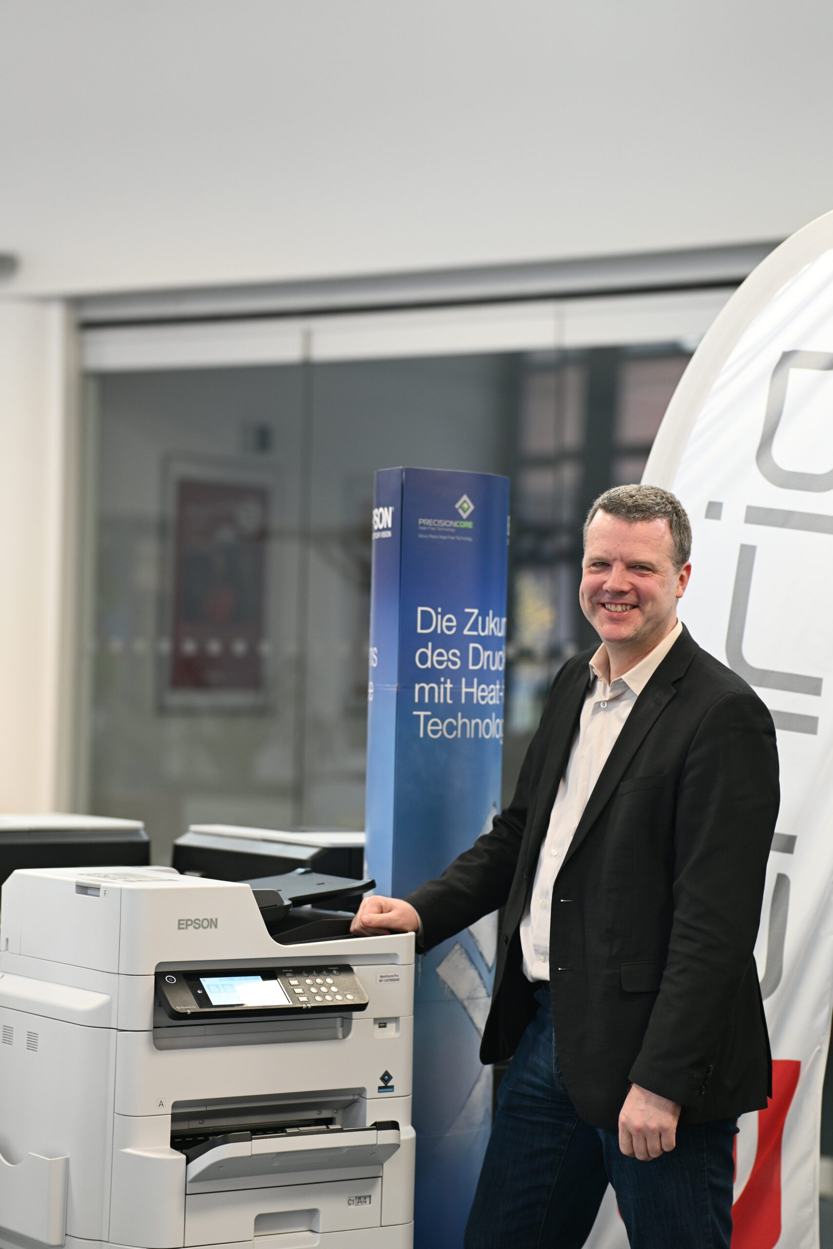„Als wir 1990 als erste Mieter in den GSG-Hof in Berlin-Charlottenburg einzogen, war das ein Quantensprung“, erinnert sich Torsten Ehrig. Der zur Wendezeit realisierte Gewerbehof an der Sophie-Charlotte-Straße nahe vom Schloss Charlottenburg ist speziell für Druckereien konzipiert worden. Mit seinen stahlverstärkten Wänden und 5,50 Meter hohen Decken bietet er viel Raum für eine vielseitige Flächennutzung – genau das, was das wachsende Unternehmen brauchte: „Hier konnten wir auf zwei umlaufenden Etagen Lager, Werkstätten, Ausstellungs- und Veranstaltungsflächen plus Büros für den technischen Kundendienst, den Vertrieb und die Buchhaltung unter einem Dach vereinen. Schön war auch, dass wir die Flächen selbst gestalten und so ideal an unsere Bedürfnisse anpassen konnten“, sagt Torsten Ehrig.
